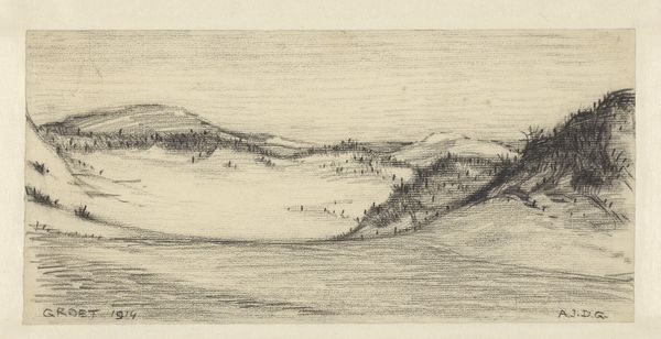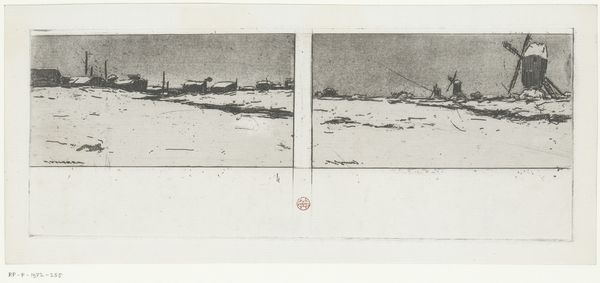 Editor: This untitled print by Peter Doig, made in 1959, features a ski slope scene. It's quite small, almost intimate. I’m drawn to its ghostly quality. What social narratives do you see reflected in this image? Curator: Well, consider the cultural context of leisure. Skiing, often associated with affluence, becomes a staged experience. How does Doig's depiction reflect or critique the commodification of winter landscapes for recreation and tourism? Editor: I hadn't thought about the politics of leisure like that. The haziness of the print almost obscures the figures; they're both present and absent. Curator: Precisely. Is Doig commenting on the individual's place within this constructed environment? What power dynamics exist between the spectator and the landscape? Editor: Fascinating. I see the slope differently now, as a stage for social performance. Curator: And how does that shape your understanding of Doig's work?