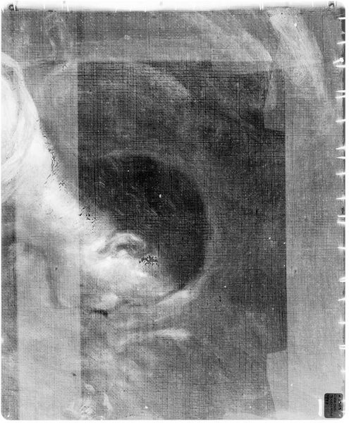Curator: This is an X-radiograph of a copy of Raphael's "Holy Family" at the Harvard Art Museums. It looks like a ghostly vision. Editor: Yes, there is a strange beauty to it. X-rays reveal not only the physical construction of the piece, but they give it an almost ethereal quality. Like we're seeing beyond the surface. Curator: It makes you think about layers of history, doesn't it? The original Raphael, this copy, and now this… technological gaze upon it all. What are we really seeing when we look at art? Editor: In this case, mortality, perhaps. Radiography invites us to contemplate what is not immediately visible, and what is not permanent. A shadow of the original, imbued with the weight of time. Curator: Absolutely. It's almost like a memento mori rendered in light and shadow. Editor: It really does highlight the transient nature of images and their interpretations across time. A reminder that even the most sacred subjects are subject to decay and reinterpretation.
