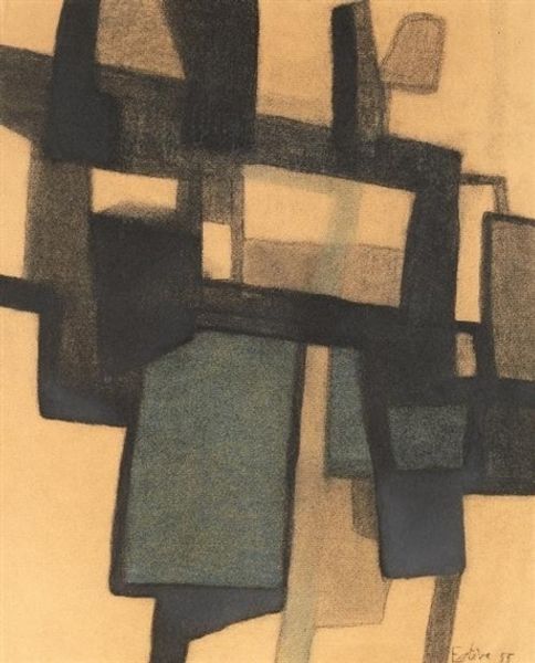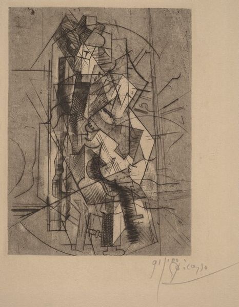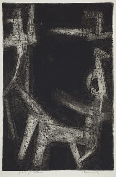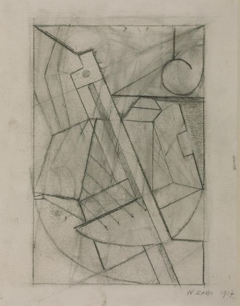 Curator: Standing before us is a drawing by Jean Xceron, created in 1937. It's simply titled "Untitled," and it’s a striking piece rendered in graphite on paper. Editor: My initial reaction is...restrained chaos. Like a city planner’s daydream where buildings are suggested more than constructed, and gravity’s just a polite suggestion. Curator: Exactly! The drawing presents a complex interplay of geometric forms. Circles intersect with rigid rectangles, creating a dynamic tension across the composition. There is an almost architectural feel, even though it collapses any sense of conventional structure. Editor: There is something so human in the wobbly lines. It's abstraction, sure, but it doesn't feel cold or sterile. It feels…thoughtful. Almost as if he’s trying to feel his way through a new kind of visual language. Curator: Xceron was deeply influenced by both geometric abstraction and, later, abstract expressionism. We see elements of both here, don't we? A drive toward pure form coupled with a freedom in execution. It’s interesting to observe the precision against the more spontaneous mark-making. The areas of densely packed graphite creating textural contrasts with the bare paper. Editor: And that lovely, raw paper texture does so much. It keeps the drawing honest, almost like it's confessing its own making. The bare ground glows as if it contains some innate light of its own. It invites contemplation as much as it dictates a formal reading. Curator: It is indeed quite beautiful, a testament to the power of simple materials wielded with sophisticated vision. It’s intriguing how he balances this delicate sense of order while exploring abstraction’s capacity for profound emotional depth. Editor: Absolutely. "Untitled," yes, but certainly not without feeling. Curator: Very well put.