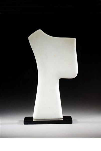 This sculpture is unusual because Hepworth made very few single upright forms in the 1960s, especially unpierced. Stylistically, there are links with her 'Torso' carvings of the 1920s, particularly a black marble 'Torso' from 1927 which is in a private collection. The artist believed that sculpture was 'something you experience through your senses, but it's also a life-giving, purposeful force.' As with 'Two Figures (Menhirs)', also in this display, the work appears to have a sacred and mysterious significance that is further enhanced by its title. Gallery label, August 2004