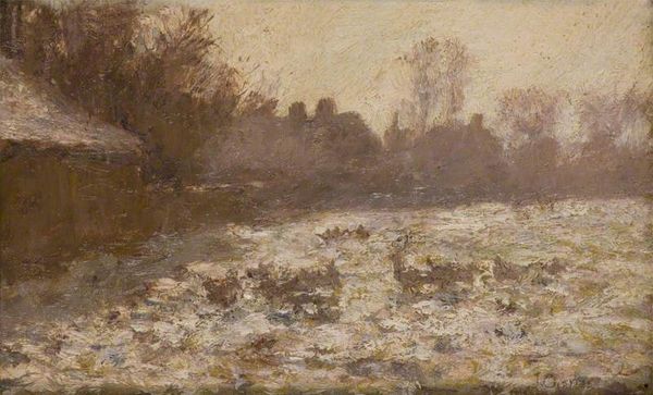 James Abbott McNeill Whistler created this painting, titled "Nocturne Trafalgar Square Chelsea Snow," using oil on canvas. The painting evokes a sensory experience of a winter evening in London. The hazy atmosphere, rendered through muted tones, suggests a landscape shrouded in mist or fog. Notice the brushwork, which blurs the distinction between objects, creating a dream-like effect. The composition emphasizes atmospheric effects over clear representation, reflecting Whistler’s interest in evoking mood through color and tone. The "Nocturne" series, of which this work is part, reflects Whistler’s aesthetic theories. He argued that painting should be appreciated for its formal qualities rather than its narrative content. Whistler was heavily influenced by the Symbolist movement, aiming to evoke subjective emotional responses. Note how Whistler challenges conventional artistic values by focusing on tonal harmony and aesthetic effect. This painting remains a dynamic site for interpretation.