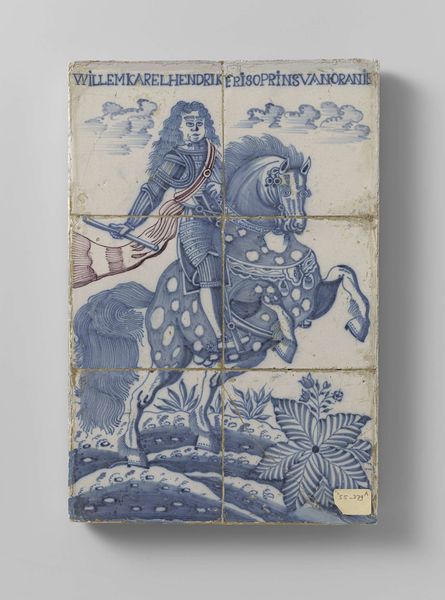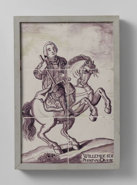 This tile tableau portraying Prince William IV on horseback was created by an anonymous artist. The piece offers us a window into the veneration of leadership and the performance of power in the Dutch Republic. Imagery of the Prince on horseback speaks to the complex interplay of gender, power, and identity. In the tableau, William IV is presented as a powerful, masculine figure. This depiction reinforces traditional gender roles and the association of men with leadership. Simultaneously, the choice of a tile tableau, a domestic item, suggests an attempt to bring the Prince and his authority into the home, creating a more intimate relationship between ruler and subject. This work invites us to reflect on the ways in which images of leadership are constructed and consumed, and how they shape our understanding of power and identity. It reminds us that even seemingly straightforward depictions can be rich with social and political meaning.