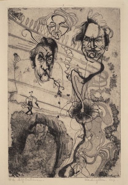 Philip Evergood created this etching, "Suffering Woman," in 1965, using a metal plate and acid to bring forth the image. Etching is an inherently reproductive medium, capable of producing multiples, and in this case, it is a "third artist proof." The velvety blacks and the wiry lines are a direct result of the etching process. Note how the acid bites into the metal, creating textures that vary in depth and darkness. This printmaking technique, which emerged during the Renaissance, allowed for the wide distribution of images, contributing to the rise of visual culture. The medium's capacity for intricate detail is evident in the faces of the figures. The subject matter seems a world away from the process involved. Yet, the artist's labor, biting through the metal plate, mirrors the toils of the working class, a recurring theme in Evergood's oeuvre. Considering materials, making, and context invites us to understand the artist's full intent, highlighting the social and cultural significance of this work.
