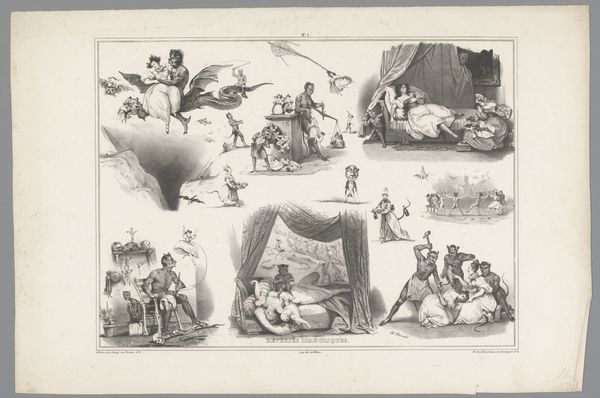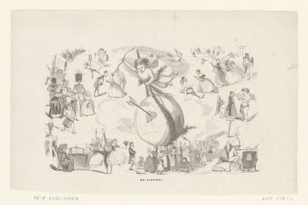 This lithograph by Rombertus Julianus van Arum, titled "The wine, the game, the love and the tobacco", offers a window into 19th-century Dutch social life. Produced during a period of significant social and economic change in the Netherlands, the print uses images of popular pastimes to explore cultural values and social norms. The detailed scenes of people drinking, gambling, falling in love, and smoking comment on contemporary life, reflecting both its pleasures and its potential excesses. Note how the artist contrasts the communal enjoyment of wine and games with the more solitary and intimate pleasures of love and tobacco. This work invites us to consider the role of leisure activities in shaping individual and collective identities, and the ways in which they can serve as both a source of social cohesion and sites of potential conflict or moral concern. To fully appreciate this artwork, archival research into the history of Dutch social customs is essential. By examining how the institutions of everyday life shaped individual behavior, we can better understand the complex social dynamics of the 19th century.