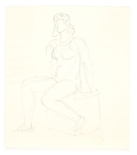 Editor: We’re looking at "Siddende kvindelig model," a pencil drawing by Harald Giersing, made sometime between 1881 and 1927. It’s currently held at the SMK in Copenhagen. I’m immediately struck by how raw and unfinished it feels, yet the pose of the figure is so compelling. What do you see in this piece? Curator: What immediately catches my attention is the line quality. Notice the varied pressure applied by the artist's hand. In some areas, the lines are faint, almost tentative, merely suggesting form. Elsewhere, particularly around the figure's outline and areas defining mass, the pencil work is much bolder. Editor: So it’s about how he actually used the pencil? Curator: Precisely. Consider how Giersing constructs the figure not through shading or traditional modeling, but through a network of lines. This directs our gaze across the surface, creating a sense of dynamism and movement despite the seated posture. How do the planes overlap? Where does he chose to intensify the lines and create shadow? These are important to note. Editor: That makes sense. So the tension between the loose lines and the more defined areas actually creates the form. Curator: Indeed. It pushes the boundaries of representation, asking us to engage with the artistic process itself. The visible construction becomes part of the aesthetic experience, leaving you to fill in the details and contemplate the way shape informs the art as a whole. What do you make of that technique? Editor: I hadn’t really considered that, but seeing how the simple medium and strokes add a new perspective on an otherwise simple composition has been so rewarding. Curator: I'm glad it sparked some insights for you; looking closely can often change our relationship with any kind of art.