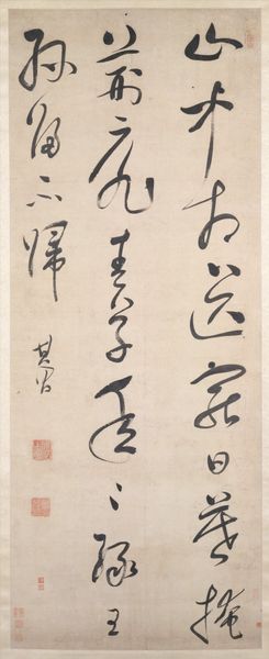 This hanging scroll was created by Itsuzan in 18th-century Japan. Executed in ink on paper, it presents a Confucian principle. During Itsuzan’s lifetime, Confucian ideals were often used to reinforce hierarchical social structures. This work reflects an era when personal expression navigated established cultural norms. Itsuzan, himself, was a complex figure, deeply influenced by both Confucianism and more individualistic philosophies. The bold calligraphy embodies a tension between discipline and freedom, reflecting the artist’s negotiation between societal expectations and personal identity. We are invited to consider how systems of thought shape individual actions and artistic expression, and to think about our own negotiation between self and society.