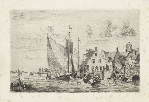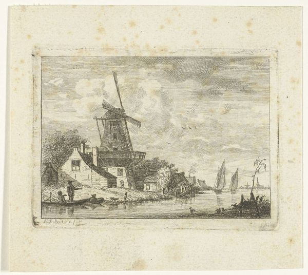 Editor: This is "Riviergezicht," or "River View," by Hendrik Spilman, made sometime between 1731 and 1784. It’s a pen and ink drawing, and it feels very…everyday. A snapshot of Dutch Golden Age life. What strikes you about this piece? Curator: It's precisely that "everydayness" that makes it compelling. The Dutch Golden Age witnessed the rise of a mercantile class, and with it, a demand for art that reflected their own lives and landscapes, rather than solely religious or aristocratic themes. What seems like a simple river view is, in fact, a statement of cultural identity and burgeoning national pride. Consider where art was shown: not just in palaces, but increasingly in homes, taverns, and public exhibitions. Editor: So, this isn’t just a pretty picture, but a reflection of societal shifts? Curator: Absolutely. Think about the function of images. What are people *doing* in them? Who gets depicted and why? These drawings circulated within a developing art market, fostering new artistic careers and influencing public taste. Artists like Spilman responded to and shaped this dynamic, contributing to a visual language that celebrated Dutch ingenuity and prosperity. What elements do you think reinforce that image? Editor: Well, the busy river suggests trade and transport, and the solid, well-kept house implies wealth. There's also a general sense of industry; it’s a working landscape. Curator: Exactly. And that idealization, that sense of order and control over the natural world, was a key element of the Dutch self-image at the time. It highlights not just wealth but how wealth is constructed, both literally and figuratively. Looking at this piece has reminded me that art, like any document, needs to be understood within its historical, economic and social context. Editor: That's a powerful reminder. I’ll never look at a “simple” landscape the same way again!