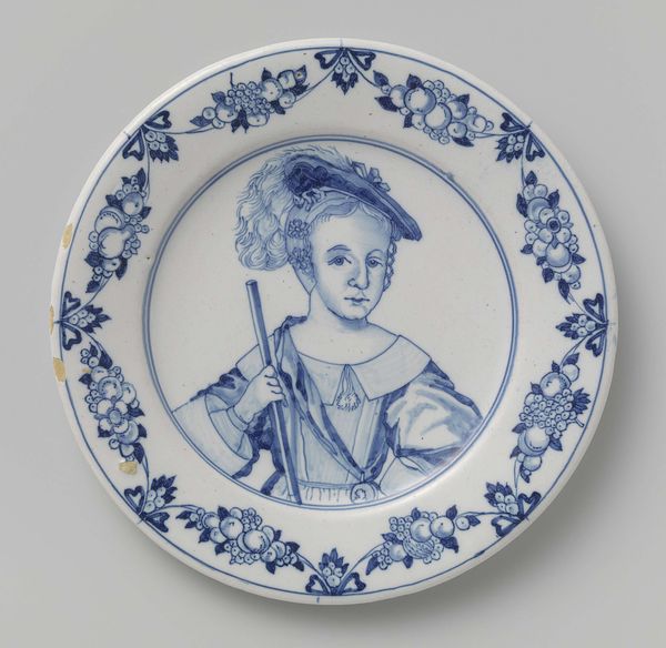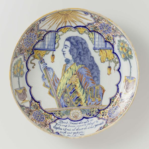 This plate, made in the Netherlands in 1758, depicts Anna of Hannover, wife of the Dutch Stadtholder William IV, in painted earthenware. Commemorative objects like this plate were part of a wider visual culture through which the House of Orange sought to consolidate its power. Ceramics like this one, were made in large quantities and sold relatively cheaply. In contrast to unique portraits commissioned by the elite, the mass production of images for plates and other household objects, meant that the likenesses of the powerful became part of daily life for a much wider section of society. The depiction of Anna is framed by classically-inspired architectural features, evoking her status and refined tastes. Two orange trees -visual puns referring to the House of Orange- flank the figure, as well as the sun at the top symbolizing power. Historians explore a wide range of sources to understand the social function of such images at the time of their production, including inventories of household goods, production records and pamphlets.