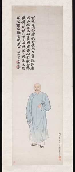 Curator: This is Fūgai Ekun's "Bodhidharma," painted around 1645. It's an ink on paper work, currently residing here at the Minneapolis Institute of Art. Editor: The sheer expressive power of such minimal means! Those stark, calligraphic lines—they really convey an intensity of spirit. There's a certain… austerity to it. Curator: Indeed. Consider the social context of Zen Buddhist art production at the time. The emphasis on spontaneity and intuition directly links to the Zen philosophy, doesn't it? Fūgai Ekun, a Rinzai Zen priest himself, used readily available materials to democratize artistic practice. It’s not about precious materials; it's about immediate expression. Editor: Yes, and the cult of personality surrounding figures like Bodhidharma! His image was carefully curated, wasn't it? He embodies defiance; staring intensely back at us from the paper after centuries. Curator: He absolutely disrupted prevailing aesthetics. It seems Fūgai Ekun used the gestural quality of ink and brush to directly relate the teachings of Zen Buddhism to the viewer. In particular, notice the economic efficiency and simple techniques of ink wash painting used. Editor: It also says something about the value society places on spiritual leaders. Museums enshrine these objects, transforming devotional works into valuable artworks viewed for art’s sake as much as for religious instruction. The inscription alongside it, those characters... Curator: These seals were added by later collectors, also becoming a testament to the life and evolving meaning of the work. Consider how this adds value and authenticity to it. Editor: Good point. And the accessibility through art! That rough stroke style really speaks to broader cultural anxieties. Curator: Absolutely! So even as we contemplate the figure of Bodhidharma, we must recognize how materials shape artistic choices. Editor: It provides a profound glimpse into the history of belief and its power to move materials, doesn’t it? Curator: Exactly, and the cultural contexts within which such images acquire power, evolve, and take new form.