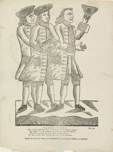 This is a print by Gijsbert de Groot Keur, made using a technique called etching, with some hand-applied color. Etching involves coating a metal plate with wax, scratching an image into the wax, and then bathing the plate in acid, which bites into the exposed metal. The incised lines hold ink, and when printed, they create a precise and repeatable image. This was an ideal technique for disseminating images widely. Here, the artist has depicted six Dutch Batavians, each ‘decked out in the best, according to their mood’. Consider the labor involved. The etcher needed skill to manipulate the tools, understanding how the acid would affect the metal. Then, the prints would have been pulled, perhaps by an apprentice. Finally, someone would carefully apply the color by hand. Prints like this one were part of a growing market for images, catering to a public eager to consume representations of their world. This artwork shows how the detailed process reflects a society becoming increasingly aware of its own image and identity.