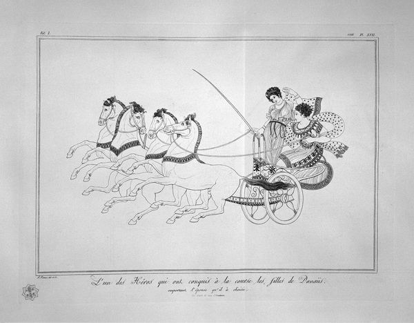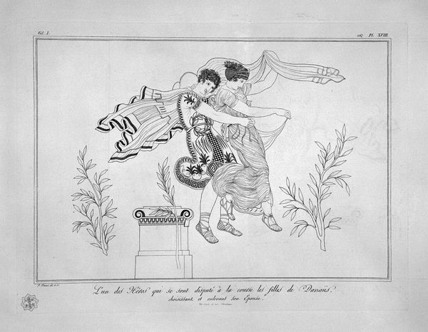Editor: This sketch, "Diana and Actaeon" by Oskar Laske, feels so dynamic. The figures are caught in this moment of flight, almost as if we are intruding on a private scene. How do you interpret this work? Curator: Laske’s piece powerfully depicts the vulnerability of women violated by the male gaze. Consider Actaeon as a representation of patriarchal power, his intrusion leading to Diana's transformation and suffering. How does the presence of the butterfly complicate your reading? Editor: I see your point. The butterfly could represent transformation, maybe Diana's metamorphosis as a defense mechanism against Actaeon's intrusion. Thanks, I never thought of it that way. Curator: It also makes me consider the broader historical context of mythological depictions and their role in reinforcing or challenging societal norms related to gender and power. It's a crucial reminder of art's ability to reflect and shape our understanding of these issues.