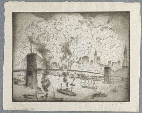 Bror Julius Olsson Nordfeldt made this etching, On the Calumet, sometime in the early 20th century. It's all about mark making. It's a testament to the power of lines, scratches, and crosshatching to create an entire world, an industrial landscape. The real action is in the details, those tiny etched lines that define the boats, buildings, and churning smokestacks. The surface of the water, especially, is built from a mesh of marks that somehow coalesce into something shimmering and alive. Notice how Nordfeldt uses the density of lines to suggest depth and shadow, the way he builds up the texture of the smoke with layer upon layer of tiny scratches. Nordfeldt studied with Whistler, another master of etching, and you can feel that legacy here, that sense of capturing a fleeting moment with a network of carefully placed lines. There's no fixed meaning here, just a feeling, an atmosphere, a world evoked through the magic of mark-making.