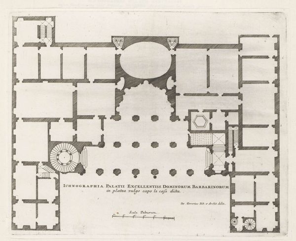 Curator: Here we have "Floor Plans of a House," a drawing and engraving dating from between 1730 and 1790 by Charles Beurlier, currently held in the Rijksmuseum. Editor: Oh, how wonderfully sterile! It’s all right angles and clinical precision. Makes you wonder who dreamt of living in such an ordered space. Looks less like a home and more like a very posh prison! Curator: Well, it's not exactly going for 'cozy', is it? Remember this emerged within the Neoclassical movement, which emphasized order and symmetry. Notice how the plan for the ground floor mirrors aspects of the plan for the first floor. The courtyard is especially interesting. These plans reflected Enlightenment ideals applied to domestic architecture. Editor: Enlightenment ideals, eh? Sounds… drafty. All those measured rooms, meticulously laid out. Still, there's a charm to it, almost a minimalist appeal despite the formal intentions. Look at that small, internal garden marked “Jardin”, almost like a desperate gasp of nature amidst all this architectural rationality. Do you think the garden represents more of a romantic idea than an actual green space? Curator: It might. Gardens in this period often symbolized a controlled, cultivated nature – a reflection of the owner's own control and cultivation. The precision evident in Beurlier’s drawing would appeal to specific tastes, likely those with formal education. These designs provided blueprints to reflect and reinforce one’s societal stature. Editor: I suppose. It feels so impersonal though! It reminds me of an elaborate diagram someone might sketch out to convince themself life has order. There is also some wonderful detail on this, from the little repeating patterns used on the garden area to the formal text laid on the bottom of the design. Still, even though my instincts say “bleak,” there is a quiet beauty here too, a ghost of a home lurking within these precise lines. Curator: Well, perhaps that is where its intrigue lies, the drawing presents the framework and asks us to bring the life to the design. Editor: That is quite well put. Thanks for enlightening me on what felt so austere. Curator: The pleasure was all mine.