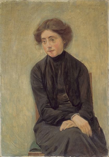 Editor: Here we have John Singer Sargent's "Portrait de Madame Allouard-Jouan," circa 1884, painted with oil. I'm immediately struck by the darkness, almost a somber mood. What pulls you into this painting? Curator: It whispers secrets, doesn’t it? The deep blacks aren't empty; they’re full of implied texture and the suggestion of hidden forms. Sargent was a master of suggestion, only hinting at detail, compelling our eyes to finish the job. You feel she has a story to tell, or perhaps many stories best kept to herself, eh? Do you notice how the light only caresses her face? Editor: It does give her a sense of mystery! What about the artistic style, Impressionism. I can barely notice it. Curator: Yes, it’s subtler here than in some of his sun-drenched landscapes, wouldn’t you agree? Look closely – the soft edges, the broken brushstrokes, especially around the edges of her form... they’re all impressionistic shorthand. And yet, it’s undoubtedly a portrait, focusing on her character, using those impressionistic techniques to enhance rather than obscure it. Do you think that Sargent felt an affinity towards Madame Allouard-Jouan or her story? Editor: It's as if he captured a moment of introspection. I’m starting to see so much more than just darkness now. The brushwork tells its own story. Curator: Absolutely! And isn’t it wonderful how a single painting can spark so many different stories within us? It’s not just seeing, but feeling.