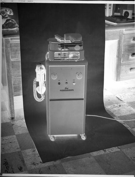 Editor: This photograph by Durette Studio depicts an "Untitled (phonaudograph machine)." I'm struck by its odd stillness. What historical echoes do you hear resonating from this object? Curator: The phonaudograph, a machine visualizing voice, offers a powerful symbol. Its cold functionality belies the human desire to capture ephemeral sounds. The image hints at the human quest to defy death and memory’s decay. What stories do you imagine were recorded? Editor: I hadn't considered its relationship with memory and legacy. It's a poignant reflection on our desire for permanence. Curator: Indeed. The machine is a potent symbol of preservation and the yearning to extend our voices beyond our mortal existence.