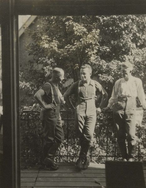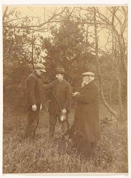This is a reproduction of a photograph of Willem Witsen, made by an anonymous artist. The image is a study in contrasts, both visual and conceptual, presenting three men in varying states of clarity. The composition is structured around a play of light and shadow. The man on the left is sharply defined, while the figure in the center seems almost spectral, fading into the background. This juxtaposition creates a dynamic tension, hinting at themes of visibility and obscurity. How does the interplay of focus and blur challenge our perception of reality? The clothing and attire of the men, rendered in muted tones, suggest a specific social context. Yet, the photograph’s ambiguous nature opens up multiple interpretations. What semiotic codes are at play in their presentation, and how do they reflect or subvert societal norms? The photograph invites us to question the nature of representation itself.