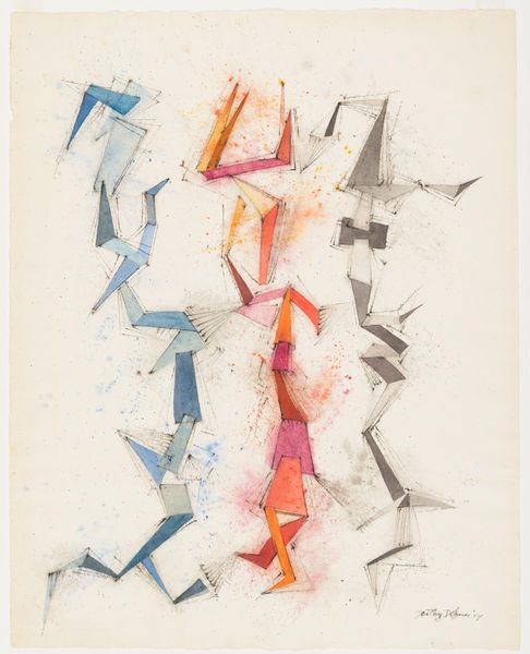 This untitled work by Pablo Palazuelo is made with what looks like watercolour or gouache, and maybe even ink, judging by the delicate lines. I'm immediately struck by the colour, which is like a burnt orange or maybe even a rust colour. The piece seems to be all about process; you can see how Palazuelo built up the shapes and lines, almost like a construction. The paint is applied in thin washes, letting the paper show through, which gives it a light, airy feel. The lines are crisp and clean, giving it a sense of precision. There's a tension between the looseness of the washes and the sharpness of the lines which is really interesting. Look at the top right, where there are three little upside down 'V' shapes, floating like birds. Palazuelo's work reminds me a bit of Paul Klee, with its playful approach to abstraction and the way it invites us to see the world in new ways. Art is an invitation to consider different perspectives, and a reminder that meaning is always open to interpretation.