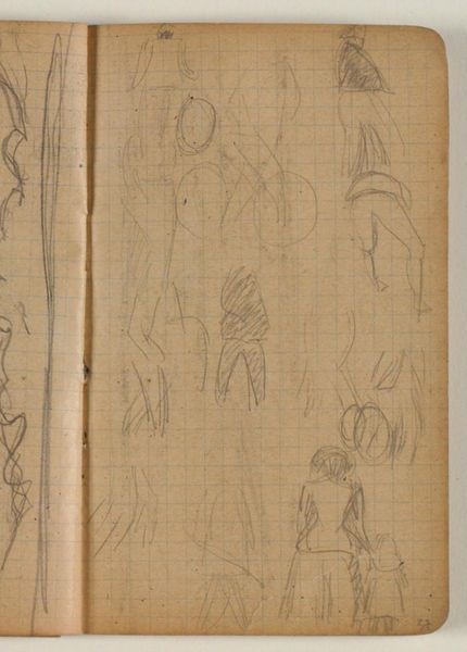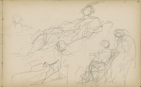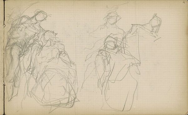 Editor: Here we have Matthijs Maris's "Standing Figures in Long Robes," made sometime between 1849 and 1917. It's a pencil drawing on paper. There’s something ethereal and ghostly about the figures. How do you interpret this work, especially considering its time? Curator: This seemingly simple sketch actually invites us to consider complex questions about representation and power. Maris was working during a time of intense social and political upheaval, and his artistic choices were invariably tied to those realities. Looking at these figures, I wonder: who are they? Who were such garments really for at that time, who did they empower or erase, and what statements were being made with their presentation in different contexts? Editor: That's an interesting point, I hadn't really considered it from that perspective. I suppose I was mainly looking at the aesthetic choices... the line work is so delicate! Curator: Absolutely, and the delicacy is also telling. It might signal a certain vulnerability, or perhaps a subtle critique of the grand, imposing portraits that were popular at the time. Can you see the suggestion of erasure of individuals through the lines, especially of the faces? Perhaps reflecting the societal erasures of so many? Editor: Yes, I see that now. So, instead of celebrating status, he’s almost… questioning it? Curator: Precisely. Consider the historical context: the rise of industrialism, changing class structures... Art wasn't created in a vacuum. Maris may be subverting expectations, challenging the very idea of who gets memorialized, and how, when such monumental shifts in history affected so many in different ways. What do you make of this intention reflected on the materials he employed to convey such questions? Editor: So, it’s not just a pretty sketch. It’s a reflection of a changing society, questioning traditional power structures. I learned a lot by seeing beyond the surface, seeing how context informs art. Curator: Indeed. And understanding that the aesthetic *is* the political.