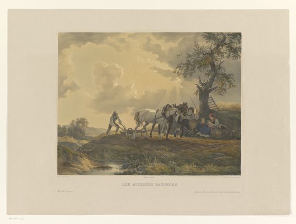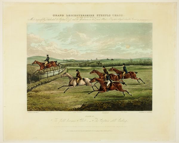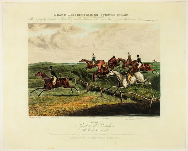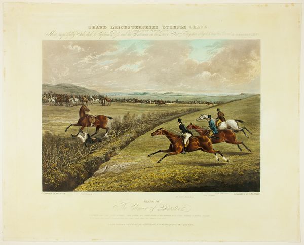 This print, by John Harris, shows horses being saddled for a race. It’s a scene teeming with anticipation, rendered through the traditional technique of etching and engraving, then enhanced with color. Notice how the fine lines of the engraving capture the textures of the horses' coats and the fabrics of the riders' attire. The process of creating such a print was labor-intensive, involving skilled artisans who meticulously transferred the artist's design onto a metal plate. Each line, each shadow, is a testament to the engraver's craft, a craft deeply intertwined with the social fabric of the time. The print offers a glimpse into the world of leisure and sport, but it also subtly reveals the underlying dynamics of class and labor. The riders, the owners, the grooms – all play their roles in this elaborate spectacle. By focusing on the material process of printmaking, we gain a deeper appreciation for the social and cultural context in which this artwork was created.