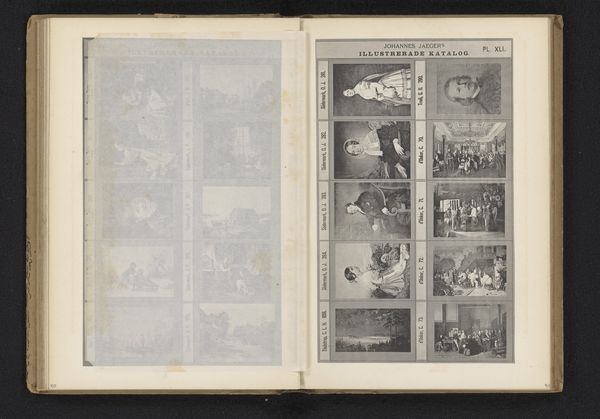Editor: This is "Fotoreproductie van tien genretaferelen" - a photo reproduction of ten genre scenes – dating from the 1870s or 80s by Johannes Jaeger. It's presented as a print within a catalog and feels like a glimpse into everyday life of that period, or at least, a curated view of it. What social commentary do you find within this compilation? Curator: Well, the catalog format itself is fascinating. It speaks to a burgeoning art market and the democratizing force of reproductive technologies like photography. We see these small windows into domestic scenes, landscapes, hinting at different social strata, but mediated through the artist’s, and then the photographer's lens. What stories are *not* being told here, and whose lives are conspicuously absent? Editor: That's a really good point. I hadn't considered the power dynamics inherent in choosing which stories get reproduced and circulated. Curator: Exactly. Genre painting, on which this is based, was often used to reinforce dominant ideologies about family, work, and national identity. Think about which social roles are being idealized – who has the leisure to be portrayed in these sentimental vignettes? It's crucial to consider the silences and the visual rhetoric deployed to create these seemingly innocent scenes. Consider also, how the act of reproduction detaches it even further from the "original" context. What do we gain, and what do we lose? Editor: So, it’s less about the individual scenes and more about the collective narrative they create and what that says about the society that produced and consumed them? Curator: Precisely. The catalog functions as a mirror, reflecting not just the lives depicted, but the values and power structures of the era. What seems charming on the surface reveals a complex web of social and economic relations when we start asking the right questions. Editor: This really shifts my perspective. I’ll definitely be looking at these types of images differently now. Curator: Excellent. Art history isn’t just about identifying styles, but about understanding how art actively shapes and reflects our understanding of the world, then and now.