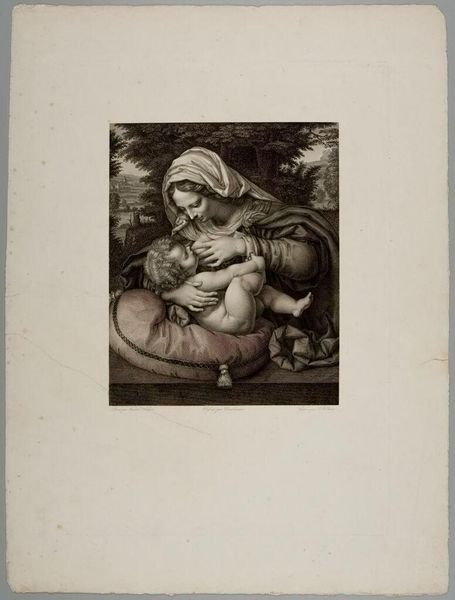 Curator: It has the weight of old knowledge. Let's discuss Timothy Cole's wood engraving, "Adoration of the Magi," created in 1891. It now resides at the Minneapolis Institute of Art. Editor: Yes, immediately it struck me as solemn. The monochrome intensifies the starkness. What can you tell me about its context? Curator: Cole was known for his meticulous reproductions of Old Master paintings. This engraving aimed to translate the textures and drama of Renaissance painting for a wider audience. I imagine the endless hours! Editor: Ah, that explains the dense symbolism typical of Renaissance depictions of this biblical scene. Do you agree that there is something in the composition's reliance on triangular arrangements, connecting Mary, Jesus, and the Magi to echo an otherworldly ideal? Curator: Absolutely. Those compositional choices lead us directly to the heart of the sacred narrative. Editor: The geometric structure certainly stabilizes the emotional experience here. And that contrast, the deeply etched lines against smoother sections of tone creates dramatic effect. I am curious to examine those faces… the wizened Magi appear as if bearing both gifts and the burdens of the world. It feels psychological, what is this burden? Curator: A wonderful interpretation. These works allowed people far removed from museums to possess a vision, to have a Renaissance master hanging in their home via Cole's gifted hand. It's about accessibility. The gift of sight, almost. Editor: Fascinating! So the act of recreating it is just as vital as the act of viewing the original. I wonder what other secrets it holds... Perhaps this artwork holds up a mirror to our own search for meaning, and indeed, reminds us of the cultural memories we carry. Curator: Precisely. I can almost feel the echoes of artistic admiration resonating within these deliberately carved lines.