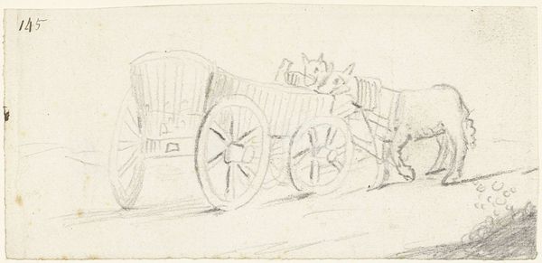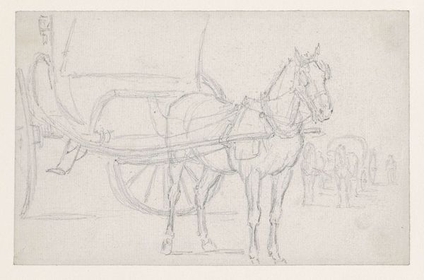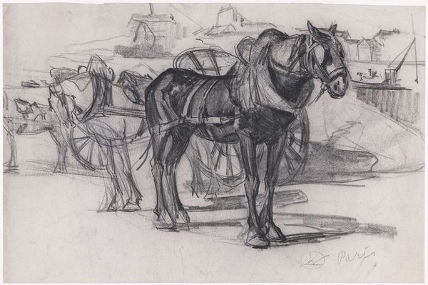 Jozef Israëls made this drawing, "Horse and cart with a man on it," with graphite on paper. Graphite is an interesting material. We find it in pencils today, but in the nineteenth century, it was also used in industrial processes, as a lubricant. Here, Israëls uses it to quickly capture a scene of everyday labor. Note how the marks vary in pressure, some dark and certain, others light and searching. The sketch shows the amount of work involved in moving goods before mechanization fully took hold. The weight of the graphite lines seems to mirror the burden on the horse. The artist’s hand is evident, the image rapidly captured, as if the artist was in a hurry to record the scene. The immediacy of the medium allows for a direct connection to the subject. It reminds us that even a simple sketch carries layers of meaning, all connected to the materials, the making, and the context of its creation.