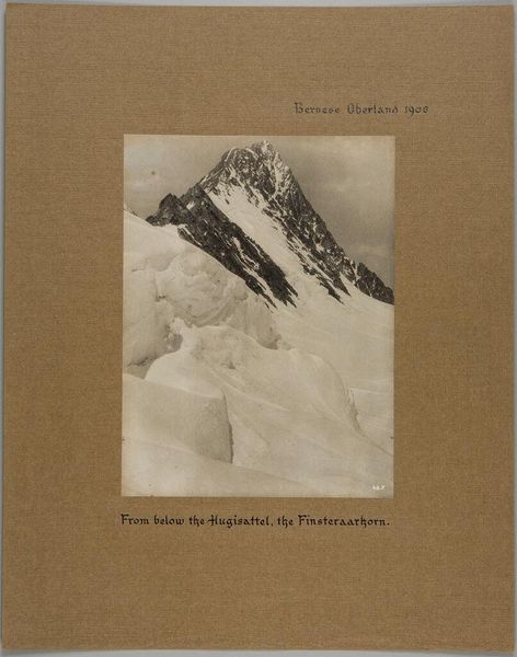 Editor: This photograph, "From the Rimpfischhorn, Pennine Alps," was taken in 1911. It's a silver print, I believe, by George Perry Ashley Abraham. There’s something so stark and remote about it. What do you see in this piece? Curator: It breathes of isolation, doesn't it? I see a dance of light and shadow, a testament to the sublime power of nature. Think about the time it was taken – a world on the cusp of massive change, yet here stands this timeless mountain. Do you feel that contrast too? Editor: Definitely! It makes me think about human insignificance against the grand scale of the natural world. Curator: Precisely. Perhaps that's why it still resonates today, offering a silent, snowy challenge to our fleeting human dramas. Editor: I hadn't considered that before; thank you.