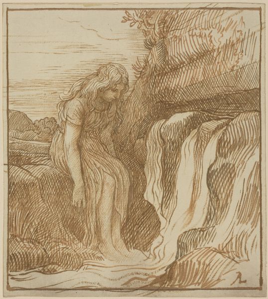 Alphonse Legros created this etching, called 'The Hurricane', using metal plate engraving. Note the woman, bent against the wind, clinging to the sturdy tree. She embodies a posture of resilience, echoing figures in ancient tapestries where survivors grasp at ruins amidst chaos. The image calls to mind the ancient motif of the "Uprooted Tree," a symbol found across cultures, representing loss and the instability of human existence. We see it mirrored in the aftermath of battles depicted on Roman sarcophagi, or in medieval woodcuts illustrating the fall of empires. Consider how this pose evokes a primal response, a deeply ingrained instinct to seek shelter. The storm is not merely meteorological; it is a psychological tempest, mirroring the inner turmoil we all face. Like the cyclical nature of storms, such visual symbols recur throughout history. They re-emerge, transformed, yet still carrying their original emotional charge.