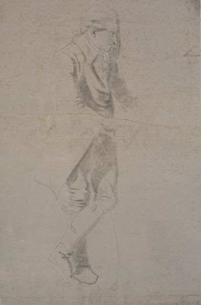 Editor: We're looking at "Mikel Glisner," an 1821 engraving by Ernst Meyer, housed in the SMK. It portrays a man, possibly a servant, standing in profile. The intricate line work and delicate shading gives it a really somber tone. What do you see in this piece? Curator: This seemingly simple genre painting opens up a dialogue about class and representation in early 19th century Denmark. Notice the man's worn attire: his patched clothes and sturdy boots speak to a life of labor. How might Meyer be engaging with contemporary ideas about the working class? Editor: Well, the Romantic period was very interested in the common man. Is this a Romantic celebration of the everyman? Curator: Perhaps. But consider, too, who is depicting this "everyman," and for whom? Meyer was part of a privileged artistic circle. How might his perspective shape the image and what values does it reflect or challenge? Editor: I guess it isn't straightforward to see this as pure celebration then. So, is the artist trying to engage with themes like inequality? Curator: That's precisely the tension that makes it so interesting. It hints at a more complex narrative about social standing, perhaps subtly critiquing the social hierarchy or attempting to give visibility to an overlooked figure. Who has the power to create images, and whose stories are told—and how? Editor: That's fascinating. It makes me rethink how seemingly simple portraits can reflect on a bigger societal issue. Curator: Exactly. It highlights the power dynamics embedded in the act of representation itself and shows us how class is a key identifier of this work and an important avenue for deeper contextual analysis. Editor: This really changed the way I think about artworks. Thanks!
