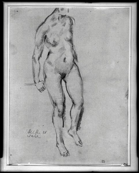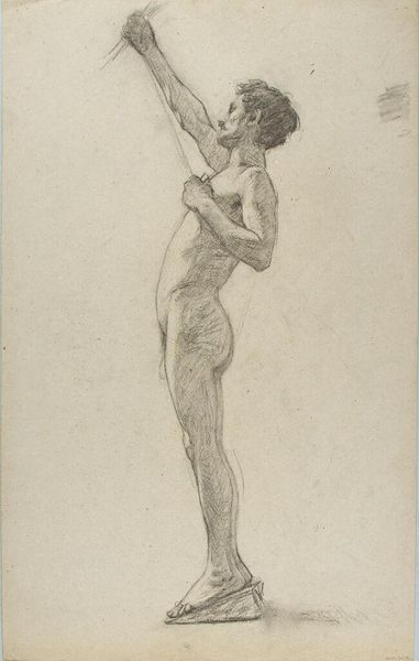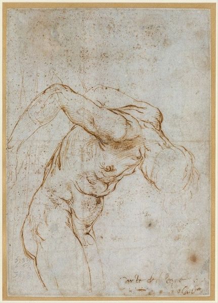 Editor: We're looking at "Two Nudes," a charcoal drawing created around 1525 by Jacopo Pontormo, currently residing in the Uffizi Gallery. The figures feel dynamic, almost caught mid-motion. I'm curious, what do you see as the most compelling formal aspects of this piece? Curator: The immediate aspect which strikes the eye is Pontormo’s manipulation of line. Notice how the sinuous contour emphasizes the torsion within the figures' forms. This is further accentuated through Pontormo's strategic implementation of *chiaroscuro*; stark contrasts that highlight specific muscle groups to produce an intensified emotional resonance. The dynamism which you sensed is largely achieved through these very contrasts, particularly around areas where light catches bone and sinew, furthering accentuating dramatic poses typical of the Mannerist style. Editor: It’s interesting you point out the contrast because initially, the blended charcoal made me think of softness. So, the light and dark do fight for dominance in this image. What would you say is the effect of using charcoal versus, say, ink in achieving this look? Curator: Indeed, it is this interplay which animates the composition. Charcoal permits a flexibility in tonal gradation unattainable with ink. The artist here has employed it masterfully to imply volume without necessitating meticulous detail, leaving regions suggestive and open to interpretation. It also mirrors a classical artistic thought: That *disegno*, drawing and design, are supreme indicators of artistic brilliance. The lack of colour, therefore, removes superfluous distractions. Editor: So, by using the medium of charcoal in such a deliberate way, Pontormo almost directs our gaze, making us fill in the blanks ourselves. Curator: Precisely. The strategic obscurity encourages an active participation from the viewer. Pontormo doesn't offer answers so much as visual suggestions. A formal tactic typical to art being made at the time. Editor: I see. Thanks, exploring Pontormo's use of charcoal through this lens really illuminates the thought and complexity behind this work. Curator: Indeed. Considering the *disegno*, allows for further inquiry into the art’s overall intent, as well as an aesthetic experience which transcends time.