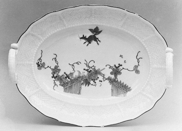 This porcelain dish was crafted by the Meissen Manufactory in Germany, a place where European artisans sought to replicate and eventually rival the exquisite porcelain wares of East Asia. The dish’s leaf-like form and decoration reference Chinese and Japanese designs, reflecting the craze for ‘chinoiserie’ that swept through Europe in the 18th century. But, these imitations also speak to Europe’s own imperial ambitions, as porcelain production became a symbol of economic and technological power. Meissen, established under royal patronage, was at the forefront of this movement, and it profoundly shaped European tastes and artistic styles. This imitation also became an innovation. The imagery in the dish presents a playful fantasy, combining Asian motifs with a touch of European whimsy. Understanding this dish requires us to explore the global networks of trade, artistic exchange, and political competition that defined the 18th century. By studying objects like these, we gain insight into the complex interplay between art, culture, and power in shaping our modern world.