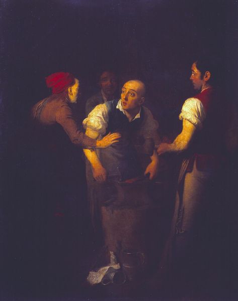 Adriaen Brouwer painted this scene of a Peasant Inn in the 17th century on a small wooden panel. Here we see an interior scene, common for the time, where peasants gather, drink, and share a space. The scene depicts a woman fainting into the arms of a man, an age-old pose evoking compassion and protection, but here, it’s fraught with ambiguity. It reminds me of earlier Deposition scenes. The swooning woman, supported by the man, strikes a pose that echoes Mary cradling the body of Christ. Yet, in this tavern, the sacred becomes profane, a visual motif inverted. Consider also the leering onlookers, whose smirks and tilted heads mimic those found in Renaissance depictions of the mocking of Christ. The artist plays with our collective memory, invoking these archetypal images to underscore the complex nature of human experience.