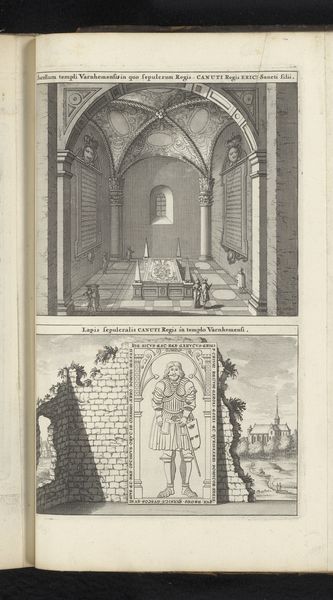 Editor: So, here we have Daniël Marot's "Arch of trellis work and garden pavilion in Rosendael," created in 1702. It’s an engraving. What strikes me is the contrast: this incredibly ornate archway on the left versus the more severe geometry of the pavilion. How do you interpret that juxtaposition? Curator: It’s like two halves of a dream, isn't it? Marot, he’s playing with Baroque sensibilities, the love of decoration and grandeur. This print captures a vision of idealized leisure, doesn’t it? But notice how both scenes offer a form of controlled nature. What do you think about the implied social activities within these architectures? Editor: That's interesting. I hadn't considered it that way, but yes, it feels performative. As if they’re stages for elaborate social rituals. Curator: Precisely! And the act of creating such spaces, the resources and labour required, all speaks to the power and status of those who commissioned it. The pavilion, perched high, surveying the land; the archway, a theatrical entrance. One wonders about the conversations, the stolen kisses… what secrets these carefully constructed landscapes have overheard! Editor: Now I'm picturing it – ladies in powdered wigs, secret rendezvous... Curator: Exactly! But also, think about the labour involved. These weren’t democratic spaces; they were built on privilege, literally and figuratively. That tension between beauty and social reality is what makes this print so compelling for me. What about you, any different impression? Editor: I hadn't thought of that labour side of things... But that element of privilege really casts the whole thing in a new light for me! Thanks! Curator: Indeed. Every delightful artwork carries shadows within, and that's where much of art's potency arises, don’t you concur?