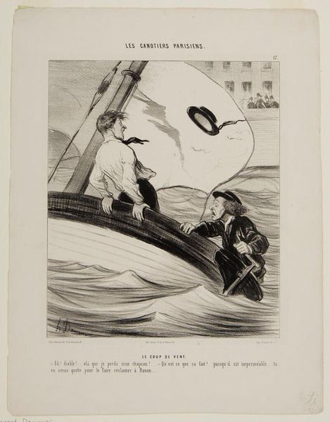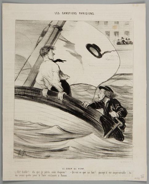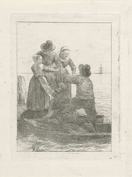Editor: This anonymous print, "Our Watering-Places - The Empty Sleeve at Newport," depicts a couple on the beach. The title hints at loss, perhaps from the Civil War. What can you tell me about its historical context? Curator: The print's original publication in *Harper's Weekly* situates it within a burgeoning visual culture and print media industry. Images like these shaped public perception and memory of the Civil War. How do you think the seaside setting plays into that? Editor: I guess the beach provides a peaceful contrast to the battlefield, maybe offering solace and a space for reflection after the war. Curator: Exactly. The "watering place" becomes a stage for processing trauma and negotiating new social realities. The empty sleeve is not just a personal loss, but a national one, visually represented and circulated. Editor: It's interesting how a simple scene can carry so much weight. I will definitely look into Harper's Weekly. Curator: Indeed, understanding the image's initial reception is key to appreciating its lasting impact.