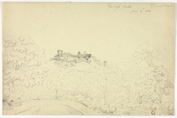Georg Melchior Kraus rendered this view of Schwarzburg Castle using watercolor and graphite, materials that lend themselves to capturing the subtle gradations of light and atmosphere. Consider how Kraus employed watercolor, a medium celebrated for its fluidity and transparency, to evoke the misty atmosphere enveloping the castle. Notice the delicate washes of color, applied with a lightness of touch, which create a sense of depth and recession in the landscape. Graphite provided the underlying structure, giving precision to architectural details and the contours of the landscape. This intimate scale invites close looking, mirroring the experience of traversing the landscape on foot. Kraus, through his masterful handling of materials, elevates a simple observation into a work of art, blurring the boundaries between topographical study and aesthetic expression. We might consider the time and labor that went into the production of this artwork, a precious depiction for its patron.