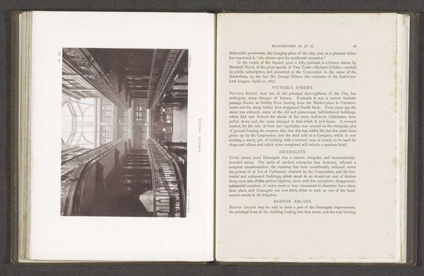 This is a photograph of the Bank of England in Manchester by Alfred Brothers. The sepia tones and stark composition immediately evoke a sense of the past. Look at how the architectural mass dominates the composition. The building's facade, rich with detail, pulls you in and is framed by the receding perspective of the street. This technique not only emphasizes the bank's imposing structure but also the urban space around it. The photograph’s formal structure emphasizes how institutions such as banks shape and control urban environments. Consider the semiotic implications: the image suggests that the physical structure of financial institutions communicates a narrative of power, permanence, and order. The linear perspective might symbolize the directional control of capital, channeling society’s resources. Finally, consider the way the photographer emphasizes the facade, underlining the interplay of surface and depth which invites us to reflect on how buildings act as cultural signs.