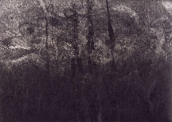 Curator: This untitled work by Jannis Kounellis presents an intimate study at 355 by 387 mm, currently residing in the Tate Collections. Editor: It's striking, almost oppressive! All those vertical lines—it feels like a cage, or maybe a forest at night. Curator: Considering Kounellis’ engagement with Arte Povera, the use of simple materials and the emphasis on process over polished product are central. The lack of explicit narrative directs our attention to materiality itself. Editor: I see that! The rough texture, the interplay of light and shadow… it's not just what it depicts, but how it makes me *feel*. Like being lost, but finding a strange sort of beauty in the darkness. Curator: Precisely. It challenges our preconceptions of value by elevating the everyday. Editor: It whispers rather than shouts. A quiet intensity. Well, it’s definitely given me something to think about. Curator: Indeed, an intriguing piece from Kounellis to contemplate regarding artistic intentionality.