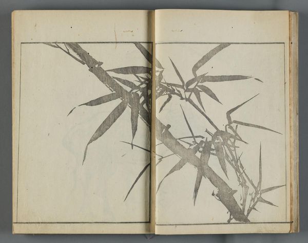 Curator: This is an image from "Model Sketches by BunpÅ vol. 2," a woodblock print by Kawamura BunpÅ, dating from the early 19th century. Editor: Immediately I’m hit by the energy of these brushstrokes, that stark contrast! It feels less like observation and more like... an embodied experience. Curator: The book offers models for aspiring artists, but also reflects the values of its time, where artistic skill was often tied to moral and social refinement. How does that strike you? Editor: Intriguing. I guess I initially overlooked the pedagogical aspect in favor of the sheer visual delight, that raw expressive power. It’s a dance, this dialogue between control and release. Curator: Indeed, and it's in that tension where we can understand the social underpinnings and the artistic impulse. Editor: Thinking about it, perhaps the “model” aspect isn't so restrictive. Maybe it’s an invitation to find your own wildness within tradition. A challenge accepted, I'd say!