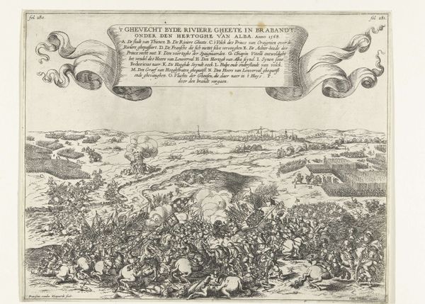 Johann Wilhelm Baur created this etching, "Verovering van de stad Limburg, 1578," during a time of immense religious and political upheaval in Europe. As part of the Habsburg empire, Baur was well-positioned to gain commissions from the establishment and this work is an imagined record of the siege of Limburg. This work captures the intense clashes between the Dutch and Spanish forces during the Eighty Years’ War, reflecting a society grappling with issues of sovereignty, religious identity, and class conflict. The artist invites viewers into a panoramic view of the battle, where dense smoke and precise lines depict the clash of armies and the siege of a city. Baur’s detailed rendering suggests an interest in conveying the experience and the emotional intensity of warfare. While glorifying the military achievement of the Habsburg empire, it's worth considering how gender and race are conspicuously absent, obscuring the diverse participants and lived experiences of those who suffered during the conflict. Ultimately, the artwork serves as a visual narrative of power and dominance. It encourages us to critically examine the stories we tell about war and whose experiences are centered in the historical record.