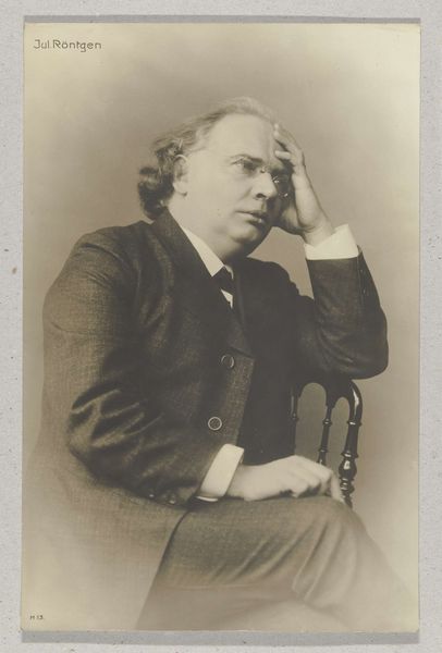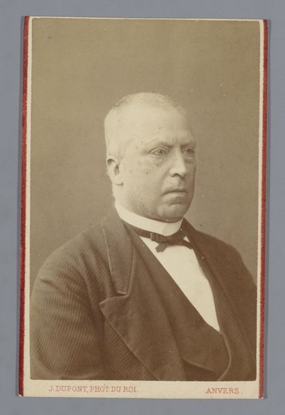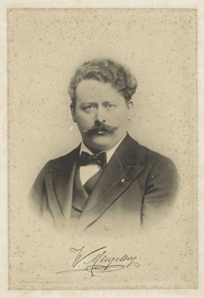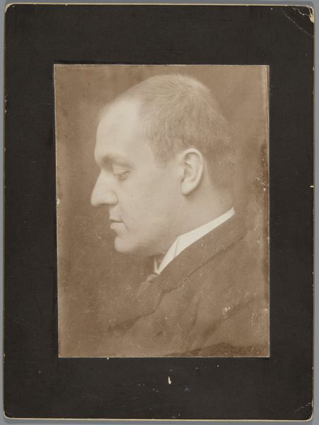 Curator: This is a gelatin silver print simply titled "Dr. A. Kuijper", dating from somewhere between 1900 and 1915. Editor: My first impression? Solemnity, I think. He’s gazing right through you with that serious expression. Curator: The interesting thing is that Kuijper was a pretty significant figure back in the day – a Prime Minister of the Netherlands, theologian, and journalist, amongst other things. It makes you wonder what he would make of this portrayal today. Editor: Definitely. You know, portraits in this era, particularly photographic ones, often served a really specific function, presenting a controlled public persona. Here, Kuijper is not just a man but an embodiment of power. You can see that reflected in the formal attire and the almost unnervingly direct gaze, communicating authority. Curator: Yes! There’s almost a pressure there – that sense of responsibility on his face. Thinking of the gelatin silver print – it's interesting how the technique itself contributed to the kind of "realism" they were after. A quest to present an individual as realistically as possible! Editor: Exactly. Realism that is technically and socially produced. The limited tonal range emphasizes texture – his skin, the fabric of his suit. However, there's a negotiation always occurring when representing identity and power relations within a patriarchal society like this one. Consider how conventions dictate how men are framed or the subtleties in staging designed to emphasize their importance. Curator: It feels like those old values are somewhat…baked into the print, if you will. Does the image hold him up as an exemplary example or give us room to pause, question, or engage with it from a modern, critically conscious view? It poses the question...how far have we come in dismantling the kind of values such an image perpetuates? Editor: The photograph also, in a sense, immortalizes him, locking in a specific understanding and presentation of self. The real "Dr. A. Kuijper" could be so much more than that one chosen representation! And that distance between then and now opens up the space for a productive kind of looking. Curator: Right, maybe we need more than a gaze to break through to those perspectives. I like that thought! Editor: So much is communicated about cultural beliefs simply in what we choose to photograph and preserve.