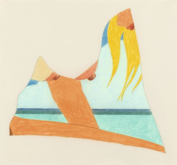 Curator: Tom Wesselmann's "Seascape Dropout" at the Tate presents us with a compelling composition. What's your initial impression? Editor: It’s striking! The geometric shapes feel so modern, but the subject matter seems very traditional, almost like a pin-up girl on a beach. Curator: Wesselmann often worked with mundane, everyday objects and imagery. Consider the silk-screening process he employed. The flat planes of color—the pinks and blues—they feel manufactured, almost mass-produced, don't they? Editor: Absolutely. And that's the tension, isn't it? The hyper-real combined with the impersonal. The deconstruction of the female form within a landscape speaks to the objectification of women and the commodification of leisure itself. Curator: It does raise questions about the artist’s hand and the industrialization of art. Editor: Agreed. There’s a lot to unpack here. It offers an interesting lens through which to examine the societal forces at play. Curator: Indeed, food for thought regarding the state of art and culture in his time.