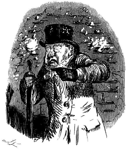 Editor: Here we have "Wait Till the Train Stops," a drawing or print rendered in ink by John Leech. It's just a flurry of action! I'm immediately struck by the chaotic energy. What symbols or deeper meanings do you find in this comical scene? Curator: Well, at first glance, the falling man evokes a sense of precariousness and loss of control, doesn't it? But consider how Romanticism often used such scenes. Do you see the umbrella and hat flying off as not merely accidental, but perhaps symbolic of lost dignity? Think about how class anxieties might be coded in this moment of public humiliation. Editor: That’s interesting. So, you're saying the image taps into anxieties about social order and maintaining appearances? Curator: Exactly! The very rigid lines suggesting speed and impact, combined with the conductor's accusatory stance, almost paints the falling man as a scapegoat. Ask yourself, what does that hat on the ground really *mean*? Is it just an object or something more representative? It all makes one question who society allows to rise, and who is condemned to fall. The birds add to this loss, and are symbols of freedom, which has abandoned him. Editor: I never would have considered those societal implications so directly! The fallen hat – literally a toppled symbol of status. Thanks for bringing that to light! Curator: It's all about looking beyond the immediate narrative and considering what cultural baggage these images carry! A drawing like this reflects, and shapes, ideas that remain culturally potent, even now.