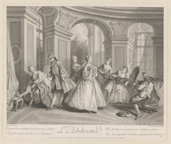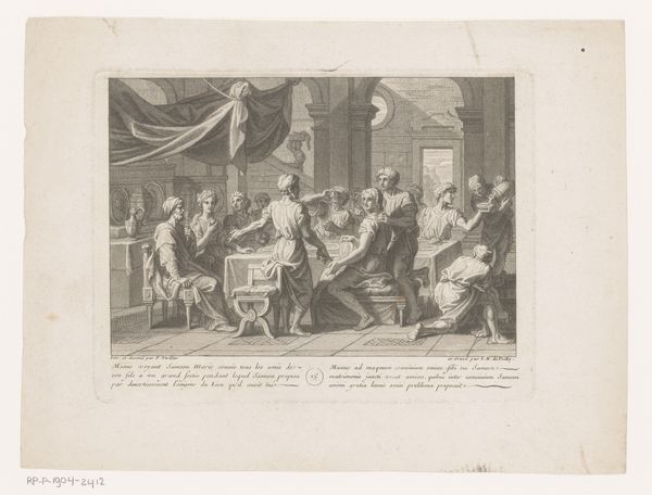 Editor: This drawing, "Alexander slays Cleitus" by Simon Fokke, is rendered in ink. It depicts a dramatic scene, and my first impression is one of conflicted power dynamics, given the inscription in Dutch and dramatic poses of the figures. What do you see in this piece? Curator: I see a powerful condemnation of unchecked authority and the fragility of even the closest relationships under such power structures. This scene, Alexander’s murder of Cleitus, highlights the dangers of autocratic rule, placing it in the context of 18th-century Netherlandish society, where ideas of republicanism were gaining traction. Do you think Fokke intended to merely depict a historical event, or something more? Editor: Well, given that it's a drawing from the 18th century depicting an event from ancient history, it could be interpreted as a commentary on contemporary political situations. Are you suggesting that Fokke was perhaps critiquing the powerful leaders of his own time through this historical lens? Curator: Precisely. By depicting Alexander's rage and impulsive violence, Fokke invites viewers to consider the potential for tyranny inherent in any system where power is concentrated in a single individual. It challenges the traditional glorification of military leaders and demands accountability, asking us to consider who benefits from such unchecked power. What does the medium suggest to you, with its caricatural form? Editor: That the message should be quite direct. Now I see how this seemingly historical piece resonates with broader themes of social justice and challenges the status quo. Thank you. Curator: Indeed, it's a potent reminder that art can serve as a powerful tool for social commentary and critique, even when veiled in historical narratives. A study for action!