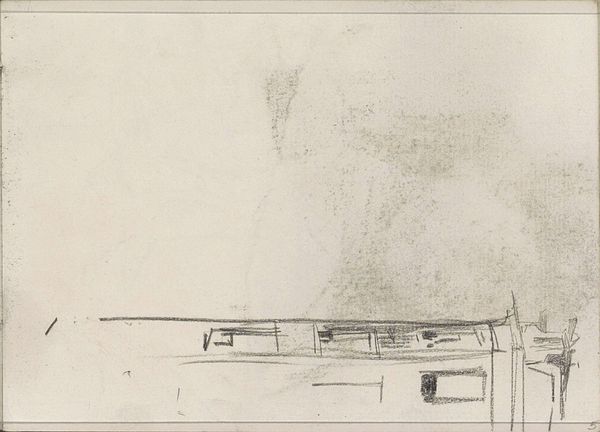 Curator: This is John Singer Sargent's "Study of a Train," housed here at the Harvard Art Museums. It's a pencil on paper sketch, measuring about 15 by 24 centimeters. Editor: It’s so evocative! The locomotive bursts forth from a cloud of graphite, a raw image of industrial power. Curator: Absolutely. Sargent, known for his portraits of the elite, here engages with the symbols of modernity and progress. Consider the labor involved in building and operating such a machine, and the coal it consumes. Editor: Yes, and how the train itself reshaped labor, enabling movement and the rapid transport of goods and people. The sketch itself—the quick, almost frantic lines—echo the speed and energy of the train. Curator: It's a fascinating departure from his usual subjects. The image raises questions about class, labor, and the social impact of industrialization during his time. Editor: It's a striking reminder that even artists celebrated for their depictions of the upper classes were engaging with the broader changes reshaping society.