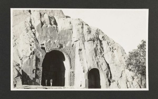 Editor: Here we have a photograph entitled "(11) [Naksh-i Rustam]", snapped sometime between 1840 and 1869. What strikes me immediately is the scale—it's hard to grasp how immense this architectural feat carved into the rock face really is. What do you notice in this work? Curator: For me, it's the echo of impermanence captured by Pesce. Here is ancient majesty, fixed in a then-modern medium. The photograph itself, destined to fade, mirroring the slow erosion of the carvings. You almost feel time folding in on itself, doesn't it? It reminds us that everything, even stone and photographs, eventually return to dust. Editor: That's beautifully put. I hadn’t considered the photograph itself as part of that story. Curator: Exactly! Photography tries to defy time, to preserve, but even it is subject to the inevitable. Look closely, you can almost see the light itself, trapped. It has travelled such a distance to reach our eyes in this instant. Hasn't it? Tell me what stories does that light suggest? Editor: Thinking about the journey that light has gone through is making me rethink my views of this picture. I'm used to thinking that only paint can carry stories and time. Thanks for helping me see that photography can be more than just a click. Curator: Art constantly teaches us to readjust, to reconsider, that our understanding evolves. It’s like watching the clouds change shape – something new every time you look. Editor: Thanks, that's a lovely way of seeing it!