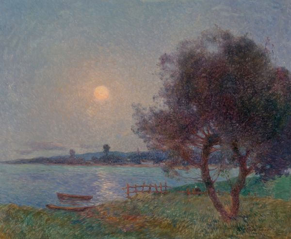 Editor: We’re looking at "Forest Road near Oranjewoud," painted in 1912 by Jan Mankes. The use of oil paint creates this really muted, almost dreamlike quality to the landscape. There’s a lone figure walking down this path and the whole scene feels very isolated. What do you see in this piece? Curator: Isolation is a key element, I think, particularly if we consider Mankes' personal history. He lived a largely secluded life due to his health, and this impacted his art significantly. How do you see the broader context of landscape painting influencing Mankes here? Do you see it adhering to tradition or trying to redefine the genre? Editor: I think he's doing something new, the realism tag is clear but his realism doesn’t depict nature as grandiose or sublime. This feels quieter, more introspective. Curator: Exactly. It breaks from traditional, heroic landscape painting. This shift reflects the changing role of the artist and the purpose of art within society at the time. There was a growing interest in exploring psychological landscapes and intimate scenes of daily life rather than solely celebrating national identity or the grandeur of nature. It’s interesting how a painting can encapsulate these cultural shifts so subtly. Editor: That's fascinating, I hadn't considered it that way! So, Mankes wasn's just painting what he saw, but commenting on art's role in society? Curator: Precisely. And he’s doing so through the visual language he employs—the muted colors, the simplicity of the composition, and that solitary figure walking away from us, perhaps symbolising a society turning inwards. Editor: It makes you think about who "we," the viewers, are in relation to the landscape in a very different way. Curator: Precisely. And in considering the institutional validation through the museum display we must think about this subtle defiance, because it provides a glimpse into broader dialogues around identity, societal roles, and our complex relationship with the environment, mediated through artistic expression. Editor: This piece really reveals the impact of culture and history on what seems like a simple landscape! Curator: Yes. It reminds us that even seemingly quiet, intimate scenes can resonate with the grand currents of history and artistic discourse.