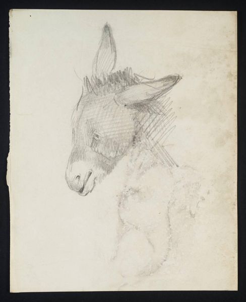 Editor: This is an untitled sketch from the British School, part of the Tate Collection. It's a pretty simple drawing of a donkey's head. I’m struck by how expressive it is, even though it's just a sketch. What do you see in this piece? Curator: I see a fascinating intersection of animal representation and social commentary. In 18th and 19th century Britain, the donkey was often employed as a symbol of the working class. It represents the burden of labor and, sometimes, stubbornness. Do you think the artist is making a statement about societal roles? Editor: Hmm, I hadn't considered that. I was just thinking about the skill it took to capture the animal’s snarl. Curator: Well, the two aren't mutually exclusive. The artist's skill serves the broader purpose of imbuing the animal with symbolic weight, which is vital to understanding its place in British visual culture. Editor: That gives me a lot to think about. Thanks! Curator: My pleasure! Considering the cultural context always enriches the experience.