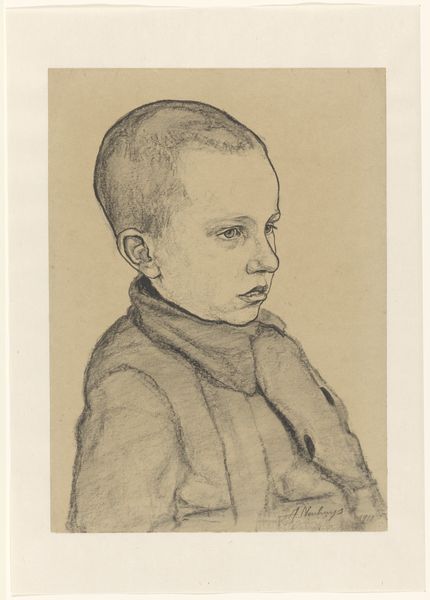 This is a charcoal drawing of a boy’s head in profile, made by Thérèse Schwartze. Note the averted gaze, a motif echoing through centuries, from ancient Roman portraiture to Renaissance devotional images. The downcast eyes, here, signal not necessarily piety, as in religious art, but rather a kind of introspective mood, a turn inward. The profile view is significant. In ancient coins and cameos, the profile was a signifier of power, of nobility. Here, the boy's youth complicates such associations. Yet, the very act of rendering a portrait, of capturing a likeness, imbues the subject with a certain importance. The boy is preserved and memorialized, his image carrying an emotional charge. Observe how this simple pose evokes a sense of melancholic reflection, tapping into our collective memories. This connects to something deep within the human psyche, the cyclical nature of life. The averted gaze and the profile view is a thread through time, a reminder of our shared human condition.