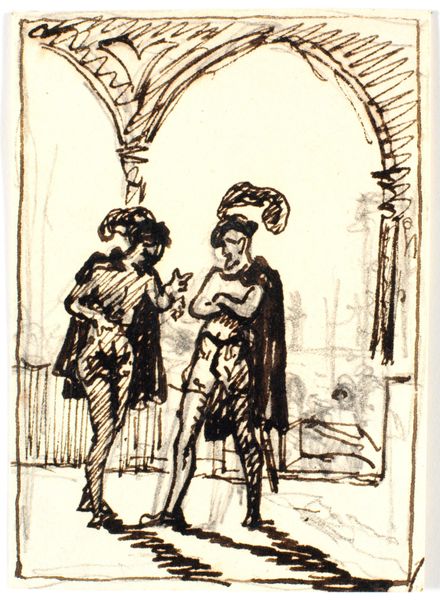 This small sketch, "Gademusikanter" by Wilhelm Marstrand, captures a street musician playing the violin, accompanied by another figure with a stringed instrument and a child. These characters represent a timeless archetype: the itinerant entertainer. The violin itself is laden with cultural significance. From ancient lyres to medieval fiddles, stringed instruments have long been associated with merriment, but also with deeper, more ecstatic emotional states. Think of Orpheus, whose lyre could charm even the gods of the underworld. Here, Marstrand's violinist evokes a sense of movement and vitality. Yet, such depictions are never static. Consider the Commedia dell'Arte tradition, where wandering players embody the unpredictable currents of life. What begins as joyous can quickly turn melancholic, a reminder of life's ever-shifting nature. This is a cultural memory, an echo of humanity's shared experiences.