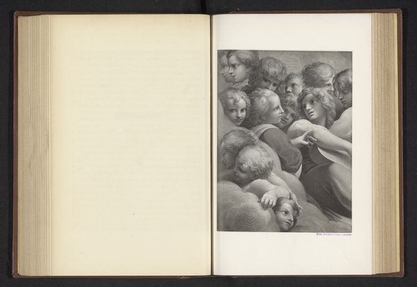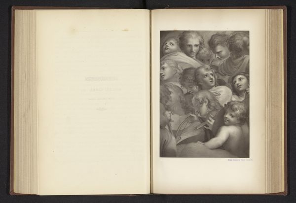 Curator: This is a photographic reproduction of an engraving, depicting Christ crowning Mary, likely created before 1876. It’s currently held at the Rijksmuseum. What's your initial reaction? Editor: A rather formalized embrace. It feels steeped in tradition, the soft shading and flowing robes giving it a very conventional piety. I sense an echo of Renaissance ideals in the composition, the use of human form to express an idea of heaven and divine relationships. Curator: The influence of the Italian Renaissance is unmistakable; in fact, this print draws inspiration from the art and conventions developed during that period. Specifically, this is rooted in history painting, but framed as an allegory, a commentary on power structures of its time. The positioning of Christ actively crowning Mary becomes more complex. Who benefits from these divine assertions? Editor: Precisely! That act of crowning carries significant symbolic weight, an overt assertion of power and divine right. The crown as a symbol dates back millennia, often linked with the sun and ultimate authority. What’s fascinating here is the image creates this kind of cultural memory, especially surrounding the female form within the framework of Western religion. Curator: Agreed. It's a powerful assertion of religious and societal hierarchies, which historically marginalize the feminine while simultaneously elevating a singular, almost desexualized version in Mary. The allegorical framing presents a theological construct, influencing the perception of women’s roles, both earthly and divine, for centuries after. Editor: Exactly, it’s that continuous thread through art history, influencing cultural norms, beliefs, gender roles, and even shaping the psychology of those within it. The positioning—him bestowing, her receiving—is part of that ongoing conversation of power, even now. Curator: Considering our moment, and moving towards dismantling these conventional hierarchies, it gives this old, formal embrace a new voice—one about reimagining structures, roles, and who holds the sceptre today. Editor: Well said! Viewing such works today allows us to actively dismantle and reconstruct ingrained beliefs; in understanding the visual language of power, we might more easily change the story.